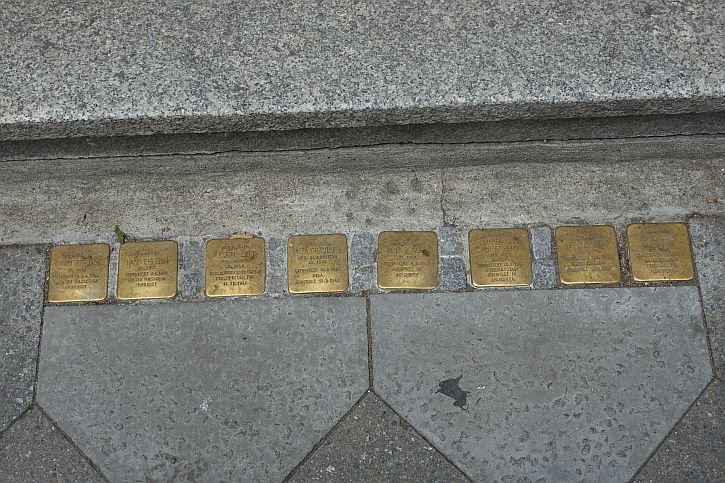 Just around the corner from the hotel where we stayed in Berlin, in cobbled and tree-lined Fasanenstrasse, I found outside number 42 eight small brass plaques embedded in the pavement. They record the deportation from this town house of eight Jewish Berliners to their deaths in the east.