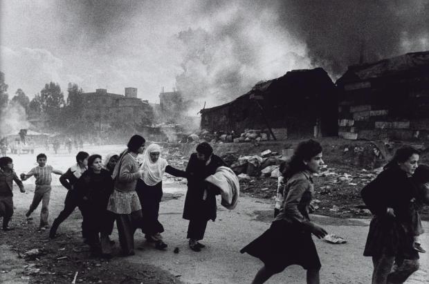 Palestinian Refugees Fleeing East Beirut Massacre 1976, printed 2013 Don McCullin born 1935 ARTIST ROOMS Tate and National Galleries of Scotland. Purchased with the assistance of the ARTIST ROOMS Endowment, supported by the Henry Moore Foundation and Tate Members 2014 http://www.tate.org.uk/art/work/AR01207