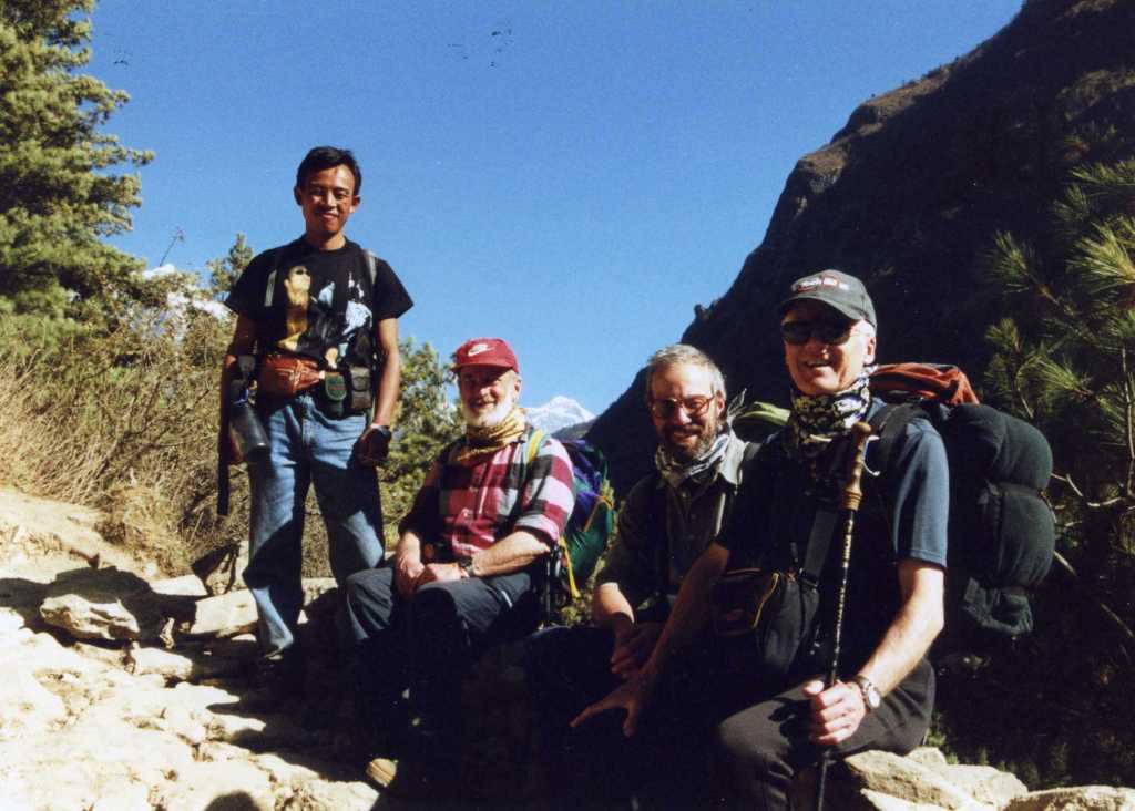 John was a governor at a number of local schools, volunteered with Mansfield Samaritans (Cecily was a founder member of this branch), and was involved in local politics. He ran regularly, and completed the London Marathon, aged 63, in 1990 – he’d been a keen runner as a young man (plenty of stamina, less speed, due to his short stature), which had taken its toll on his knees and he had to have two knee replacements later in life. He undertook many walks with Cecily (and their dog, Corrie) after his retirement, including the Coast to Coast Walk, and along the Northumbrian coast. Having visited Nepal during his work with Trent Polytechnic, he returned to Everest to climb as far as the snow line, fulfilling his dream to stand on its slopes.