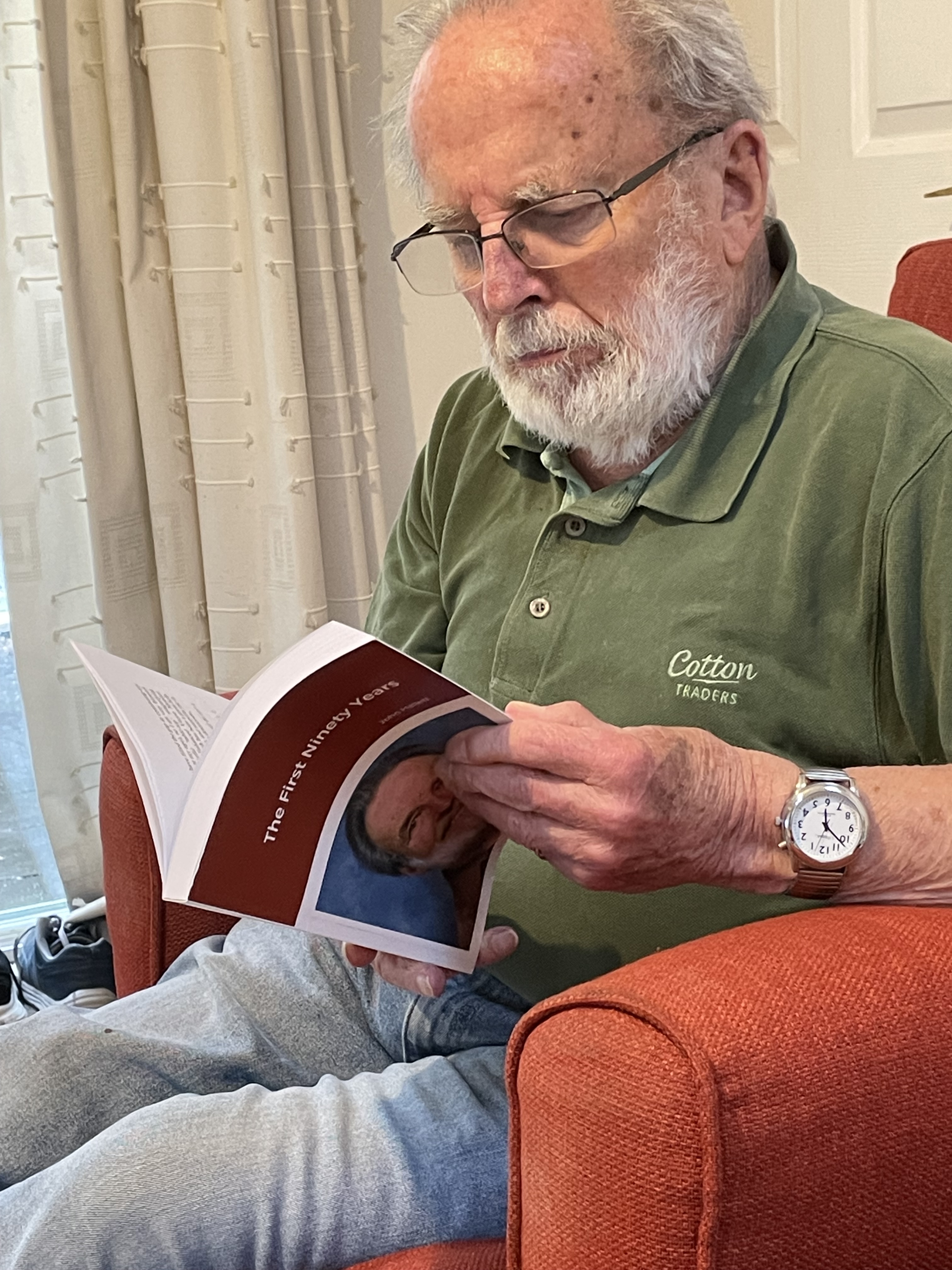 He had, from a young age, a sense of purpose, and one of his frustrations as his eyesight began to fail was that so many projects – travel abroad, or even ambitious UK walks like the ones that he and Cecily had done years before – were no longer practical or safe. For a while, writing his memoirs became his purpose, although in the final stages of the project dementia had begun to rob him not only of his memories but of understanding, and so I edited the document and arranged publication so that a copy could be placed into his hands whilst he could still recognise it as The Book, his own work.