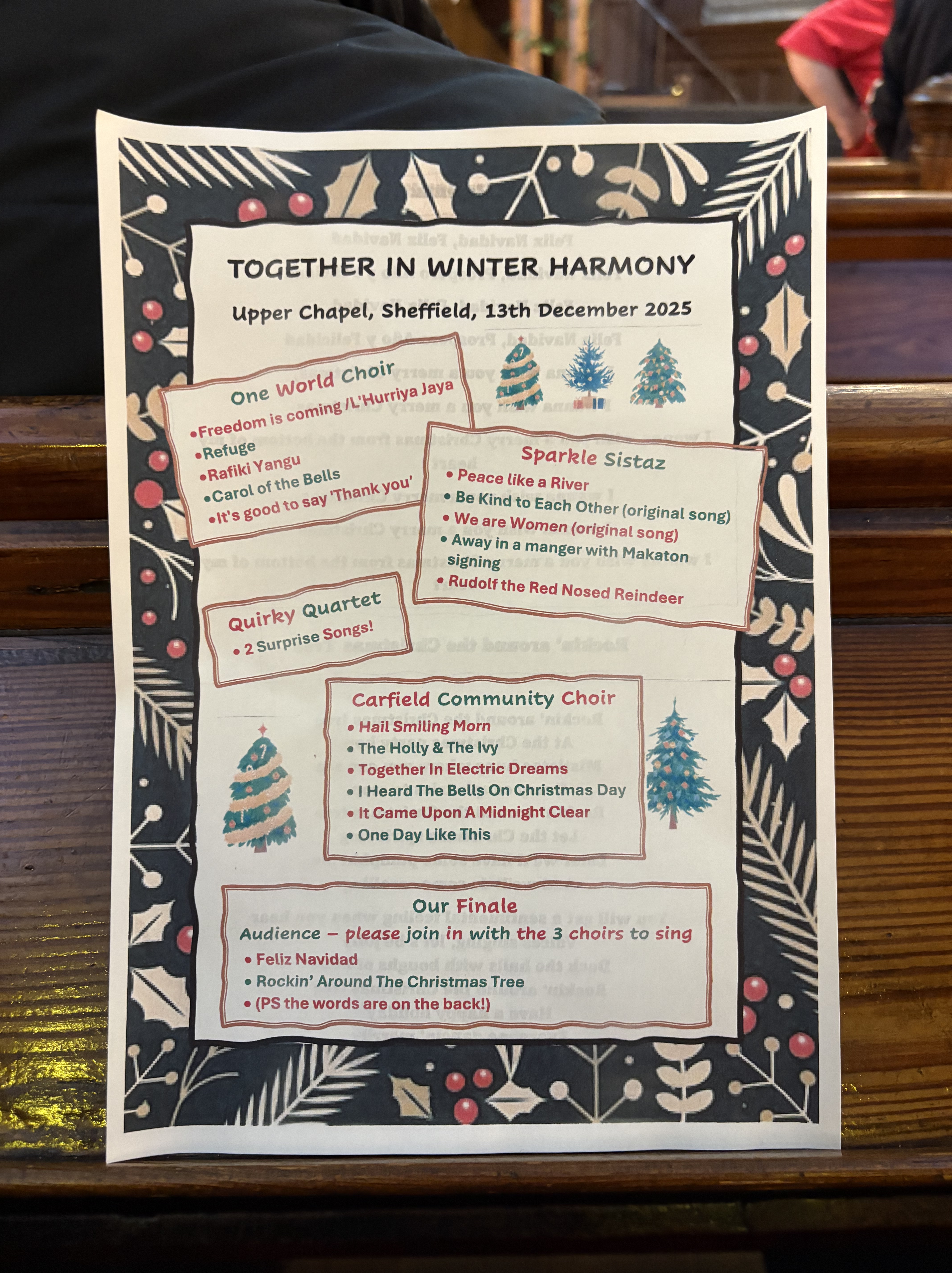 Together in Winter Harmony – Carfield Community Choir, One World Choir, Sparkle Sistaz (Upper Chapel)