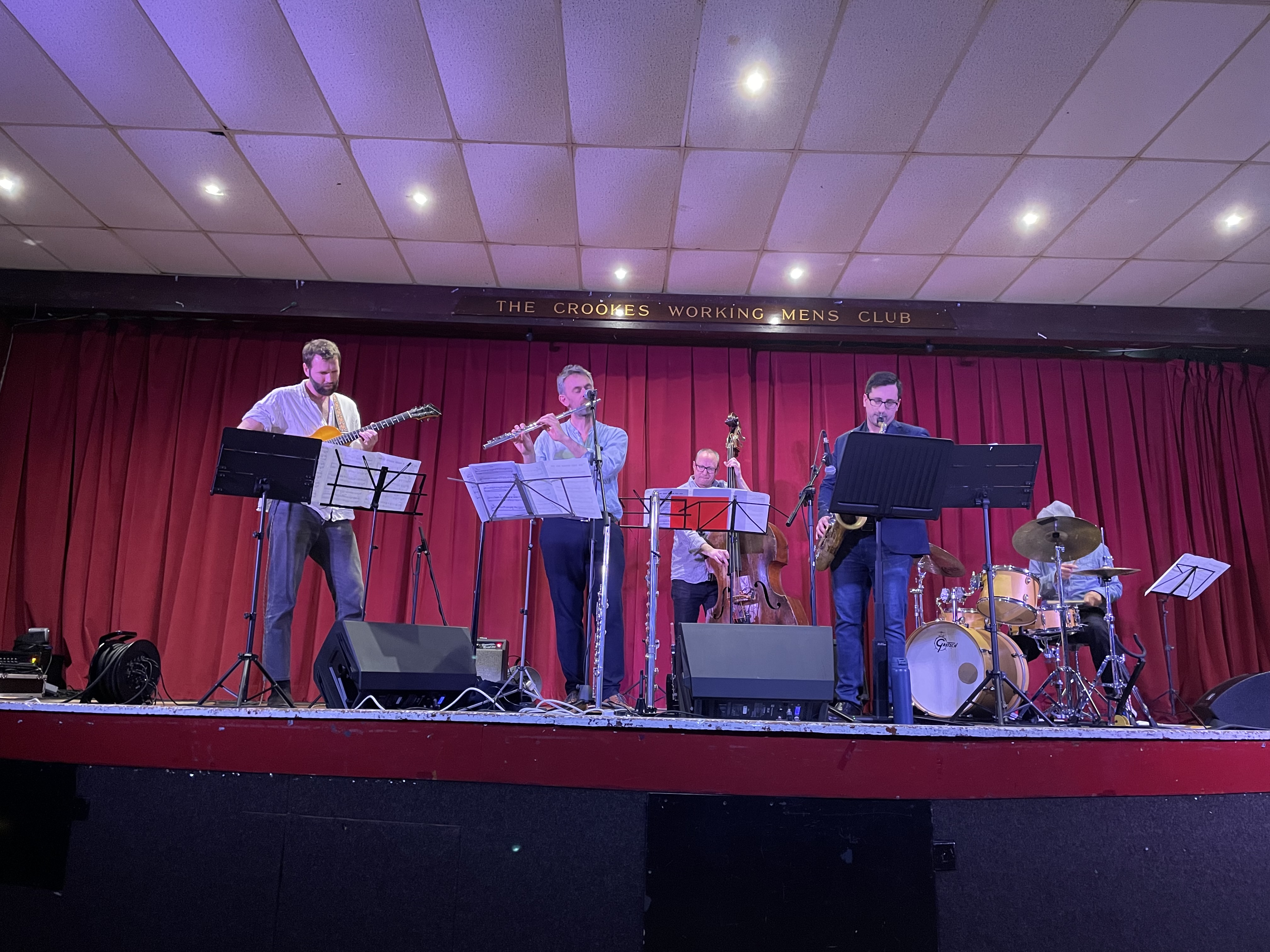 Gareth Lockrane Quintet, Sheffield Jazz (Crookes Social Club). Superb fluting from Lockrane who, according to the publicity material, ‘plays all the flutes’ – he certainly played quite a few over the course of the evening. The other quintet members were Nadim Teimoori on tenor sax, Nick Costley-White on guitar, Oli Hayhurst on bass, and Gene Calderazzo on drums.