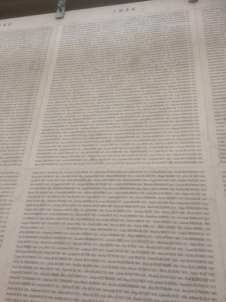 We began at the Mémorial de la Shoah. I had braced myself for this, knowing the terrible history that would be illustrated there. Nonetheless, seeing the Wall of Names, I felt the air being sucked from my lungs, realising that I was seeing in that moment only a fragment, only some of the names from only one of the years.