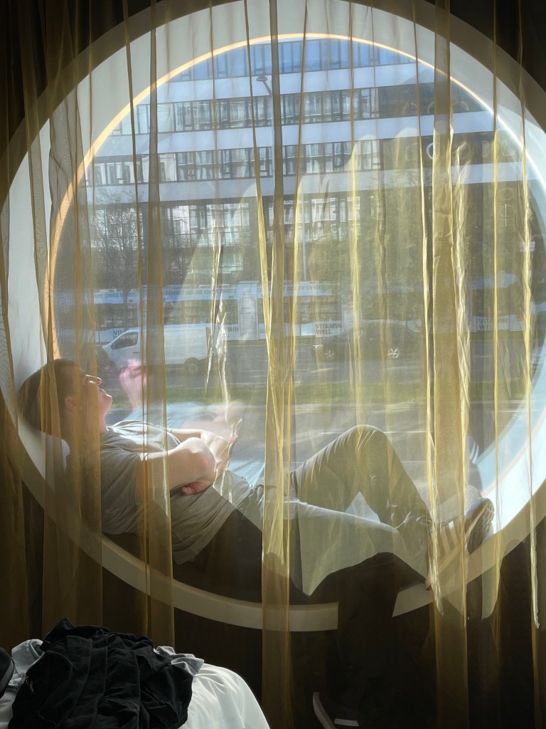 We arrived on Monday evening, flew in from Manchester and got a train from the airport to the Hauptbahnhof, from where we just had to cross the road to get to our lovely hotel, Mooons (comfortable and welcoming – we were tired and a bit stressed after we’d checked in, having had a slightly less straightforward journey from the airport than we’d anticipated, and Sven the barman sorted out food and beers for us so we started to chill out and enjoy planning our time. We made the most of our two full days in the city – though there is plenty we didn’t see, buildings that we saw from the outside but didn’t go round, for example – I clocked up 59k steps, 40.5 kms. We managed to find some proper Viennese food – e.g. schnitzel and goulash, and good beer (I went for the darker beers, less lagery).