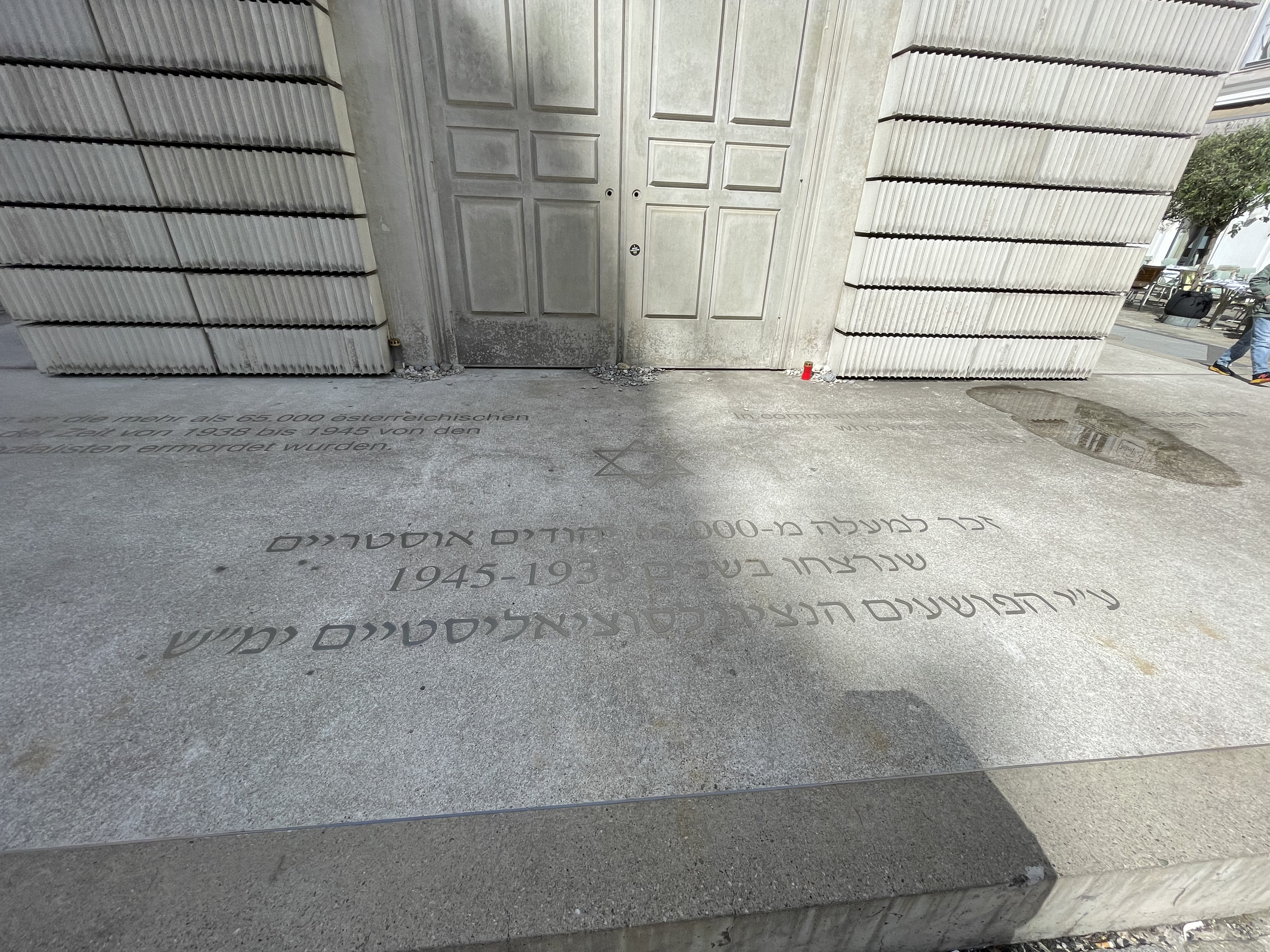 Stolpersteine (Schwedenplatz): Here there are three individual stones, and a plaque in memory of 15 unnamed Jewish women and men who lived here before they were deported and murdered (no details given) by the Nazis. The Stolpersteine commemorate Anna Klein, b. 14 Jan 1885, Josefine Steinhaus, b. 21 May 1884, Helene Steinhaus b. 3 August 1885. Deported to Maly Trostinec 27 May 42, killed 1 June 42. Maly Trostinec/Trostinets, a village near Minsk in Belarus, was not a location I was familiar with. Throughout 1942, Jews from Austria, Germany, the Netherlands, Poland, and the Protectorate of Bohemia and Moravia were taken there by train and then shot or gassed in mobile vans. According to Yad Vashem, 65,000 Jews were murdered in one of the nearby pine forests, mostly by shooting, but some estimates are much higher, up to 200,000.