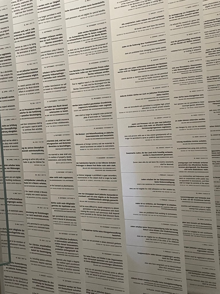 Part of my interest in visiting these three cities was to reflect on how they differ, and in particular how they approach their own WW2 history. Austria was recognised during the war as Hitler’s first victim, but it is of course not quite that simple – there was enormous support for the Nazi party, and a long history of virulent antisemitism in Vienna, that ran alongside the major Jewish influence in culture and the arts as well as in business and politics. Czechoslovakia was, entirely straightforwardly, a victim of Nazi aggression, and Prague’s Holocaust memorial takes the form, most powerfully, of the names of the dead, painted on the walls of a synagogue. Berlin deals with its past – both the Nazi era and the injustices and brutalities of the DDR – with candour and without excuses, and its memorial is not about the Jews of Berlin or of Germany, but all of the murdered Jews of Europe.