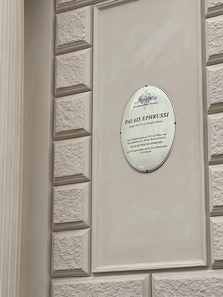 We found the Palais Ephrussi, on the Ringstrasse (see, again, The Hare with the Amber Eyes). I had had an insight into the efforts to trace the plundered contents of the Palais, from Veronika Rudorfer who I met in December 2019 at a conference, when she gave a talk on that project, and subsequently, very generously, sent me a copy of her beautiful book about the Palais itself.