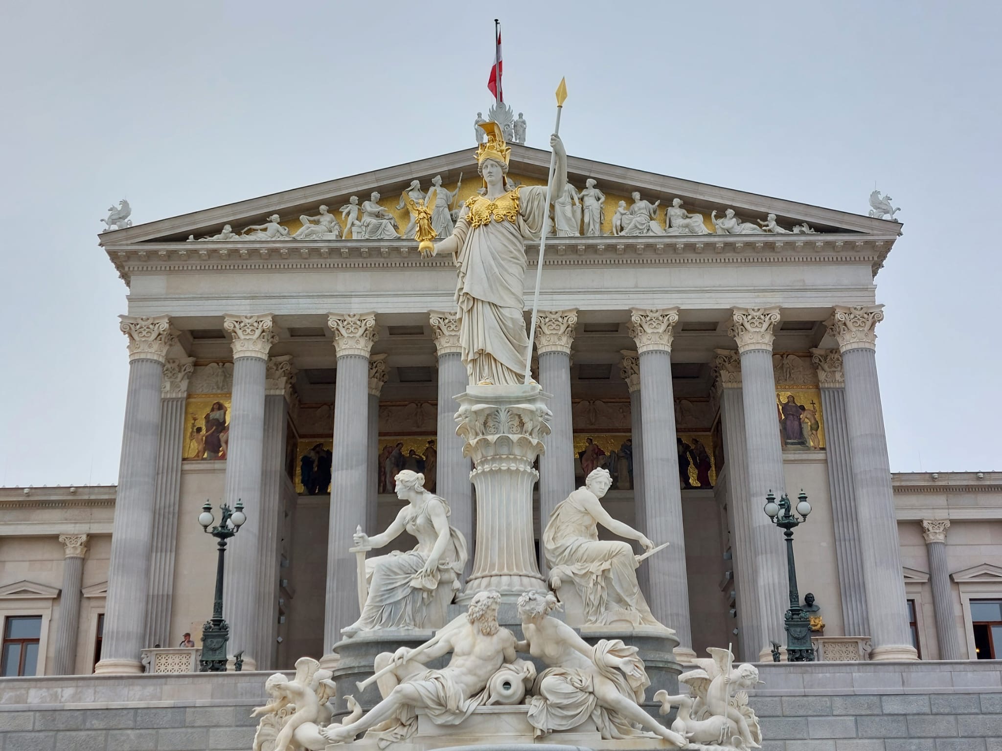 Parliament Building – another building that was seriously damaged in WW2 and the restored to its former glory. In front of it is the Pallas Athene Fountain – apart from Athene (statuary in Vienna is often Graeco-Roman in subject matter and style) it represents the four major rivers, the Danube, Inn, Elbe and Vltava (Moldau in German).
