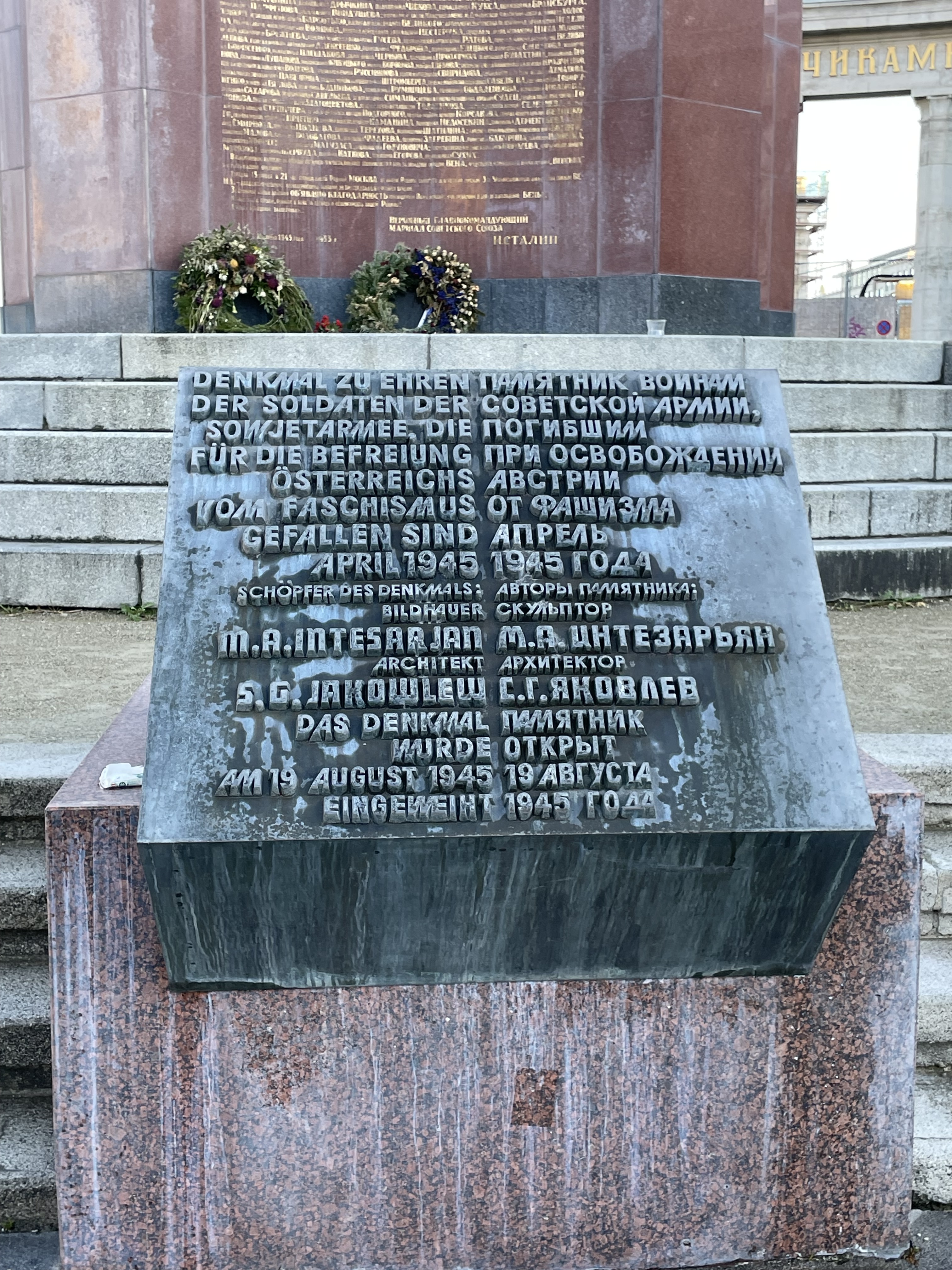Memorial to liberating Soviet soldiers (Heldendenkmal der Roten Armee/Heroes’ Monument of the Red Army), in Schwarzenbergplatz, featuring a twelve-metre figure of a Soviet soldier. This was unveiled in 1945. It seemed to me remarkable that it was built so soon after the war ended, but then I hadn’t realised either that Vienna was liberated by the Red Army, or that in the hiatus before the other Allied Forces arrived, there was a real possibility of Stalin occupying all of Vienna. The memorial is about heroism in battle, not about the violence, particularly sexual violence, inflicted on civilians during and after the battle, and has been controversial and subject to vandalism over the years, including very recently in response to the invasion of the Ukraine.